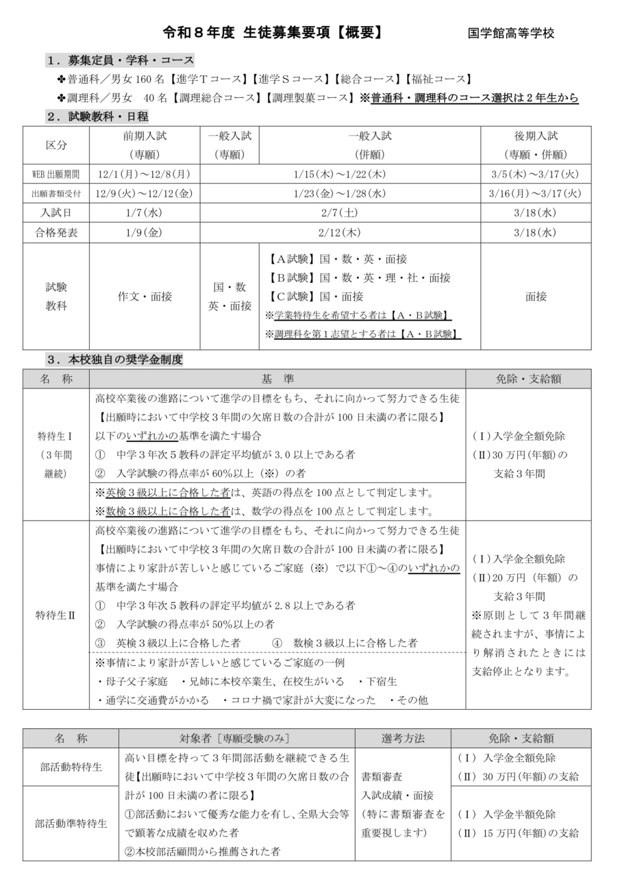 令和8年度生徒募集要項・学校案内について
